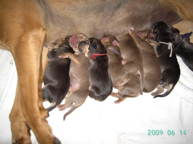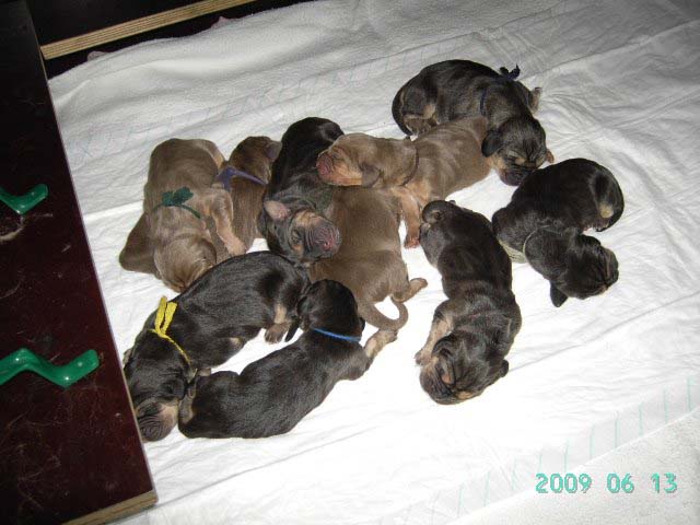 9 PUPPIES BORN 12 JUNE 2009 OUT OF THE FOLLOWING EXCELLENT COMBINATION: 2 LIVER MALES 3 BLACK & TAN MALES 2 LIVER FEMALES 2 BLACK & TAN FEMALES